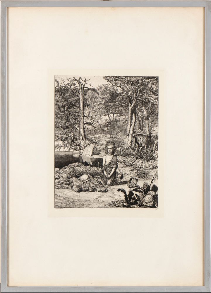MAX KLINGER (Lipsia 1857 - Großjena 1920) , Simplicius am Grabe des Einsiedlers tavola VIII 1881