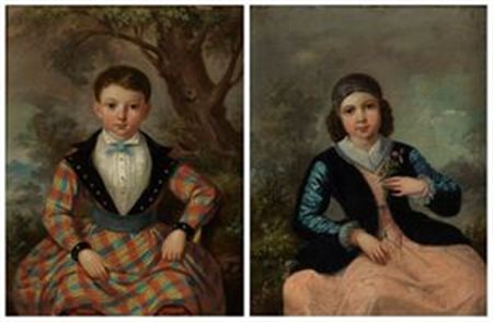 PITTORE ANONIMO DEL XVIII SECOLO Coppia di ritratti di giovinetti Olii su...