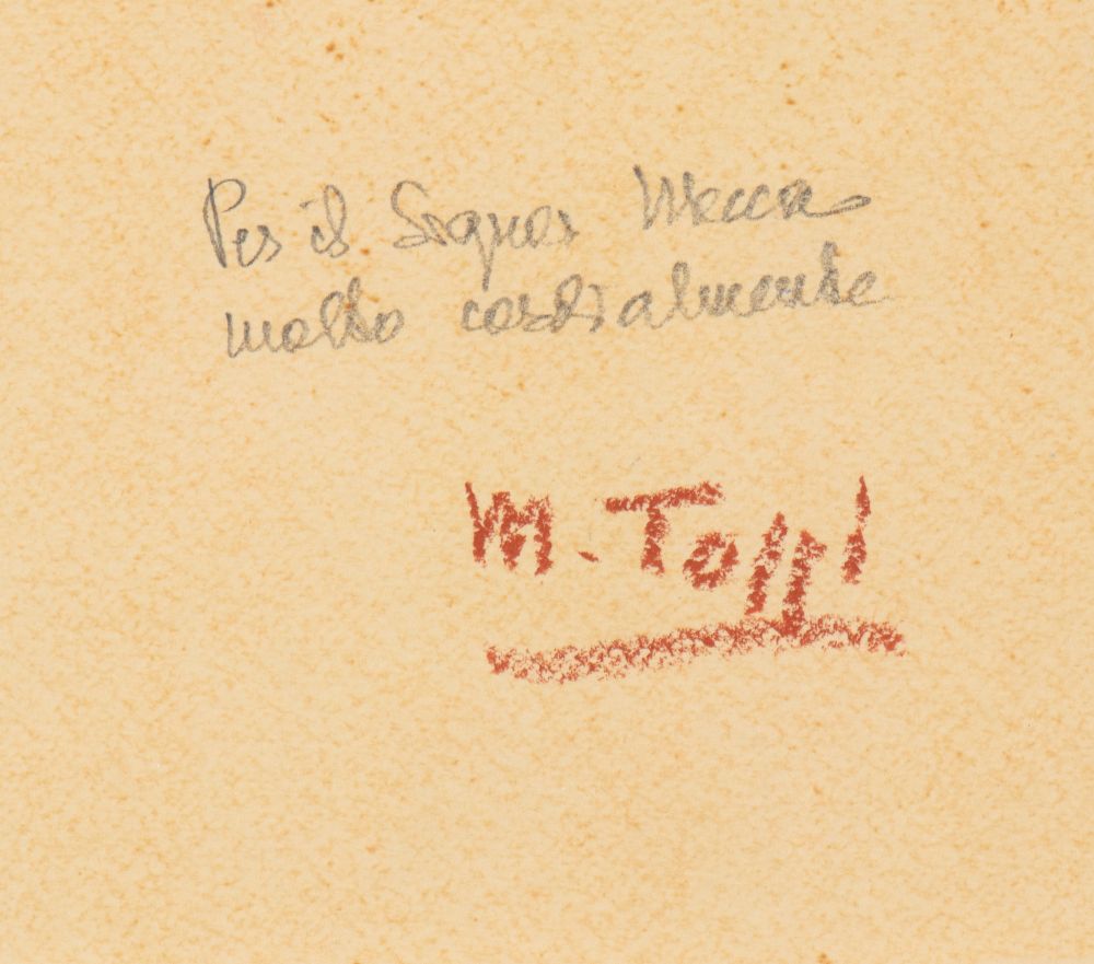 Firmato in basso a sinistra con dedica: "Per il signor Mecca molto cordialmente, Mario Tozzi"