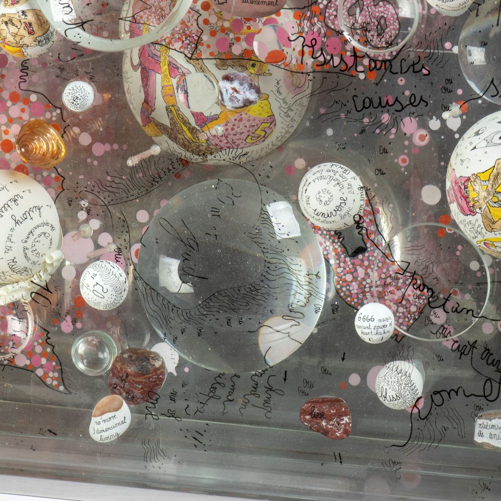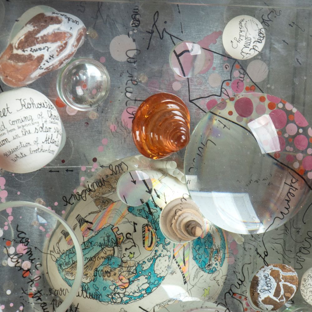 Tecnica mista (inchiostro, vetro, lenti di vetro, lente di ingrandimento, legno, caseina, tempera, plastica)