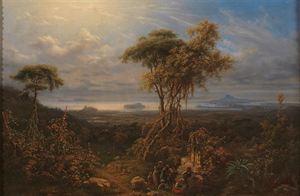PITTORE ANONIMO DEL XVIII SECOLO Veduta del Golfo di Napoli Olio su tela 40x60 cm Oil on canvas