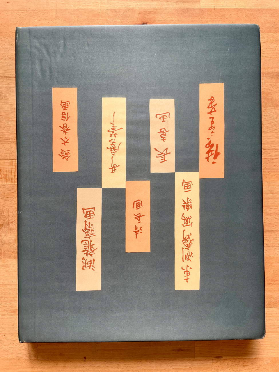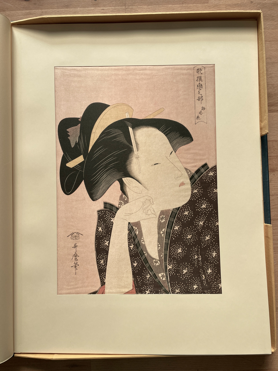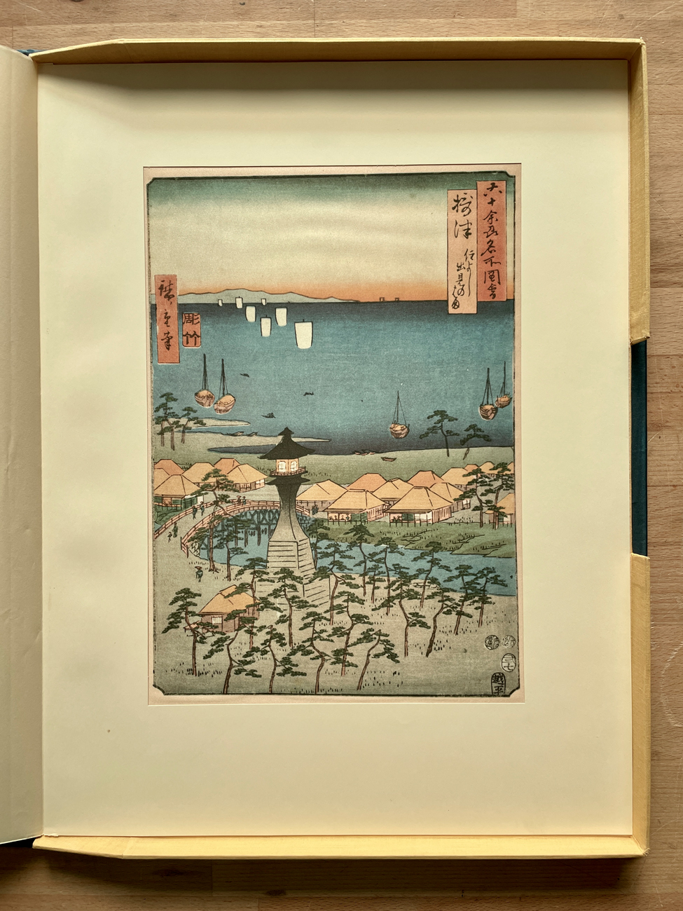 Cofanetto contenente fascicolo di presentazione e 14 riproduzioni sciolte di xilografie giapponesi policrome, ciascuna entro folder