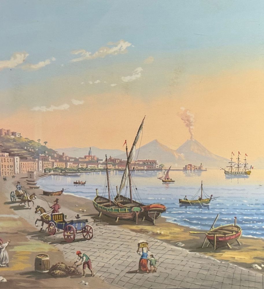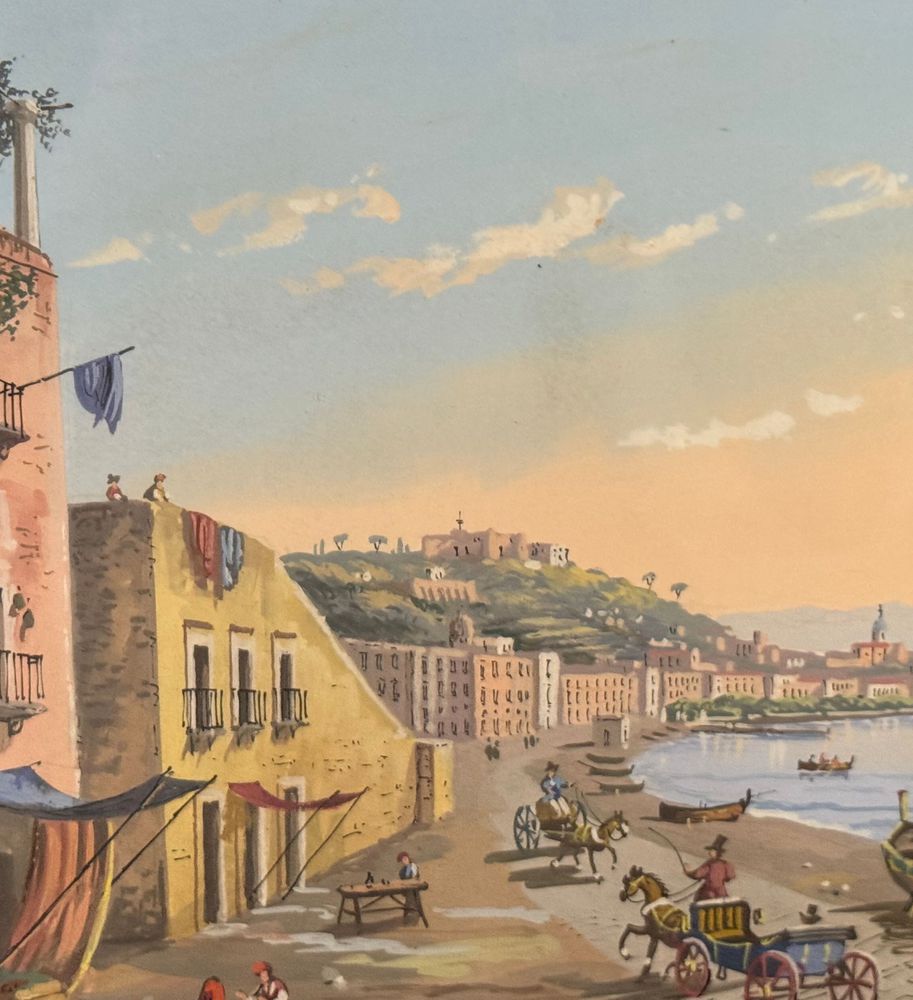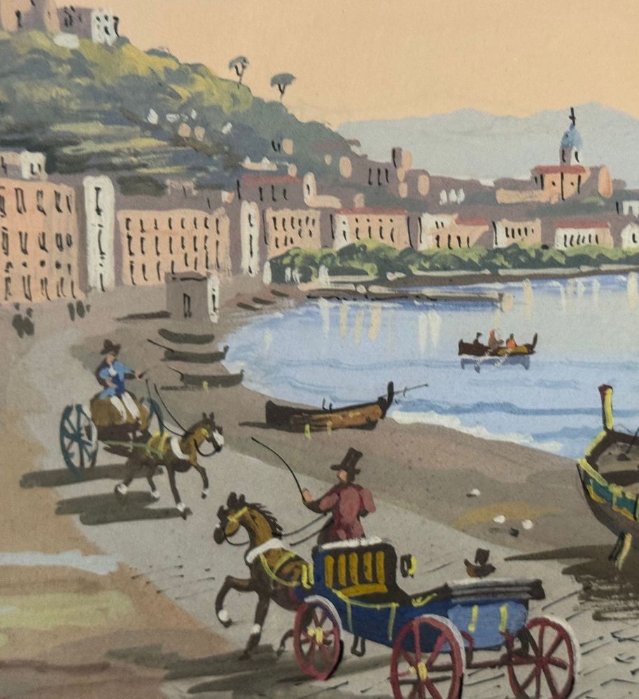Dipinto guazzo (tempera su carta), periodo XX secolo, scuola Italiana, raffigurante Napoli da Mergellina. Dimensioni compreso cornice: 48x38. Dimensioni interno cornice: 45x35 cm. Artista anonimo. Opera in buone condizioni.