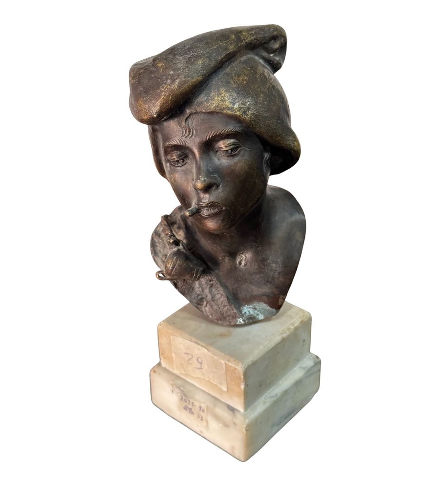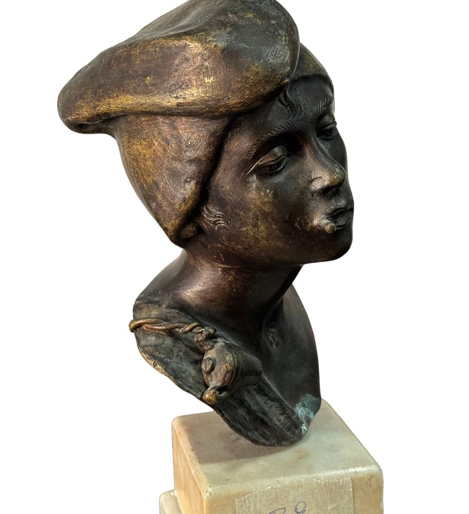 Scultura in bronzo, periodo XX secolo, raffigurante Busto di giovane pescatore. Dimensioni: h28x9x9 cm. Firmato sul retro Achille D'Orsi. Opera in buone condizioni.