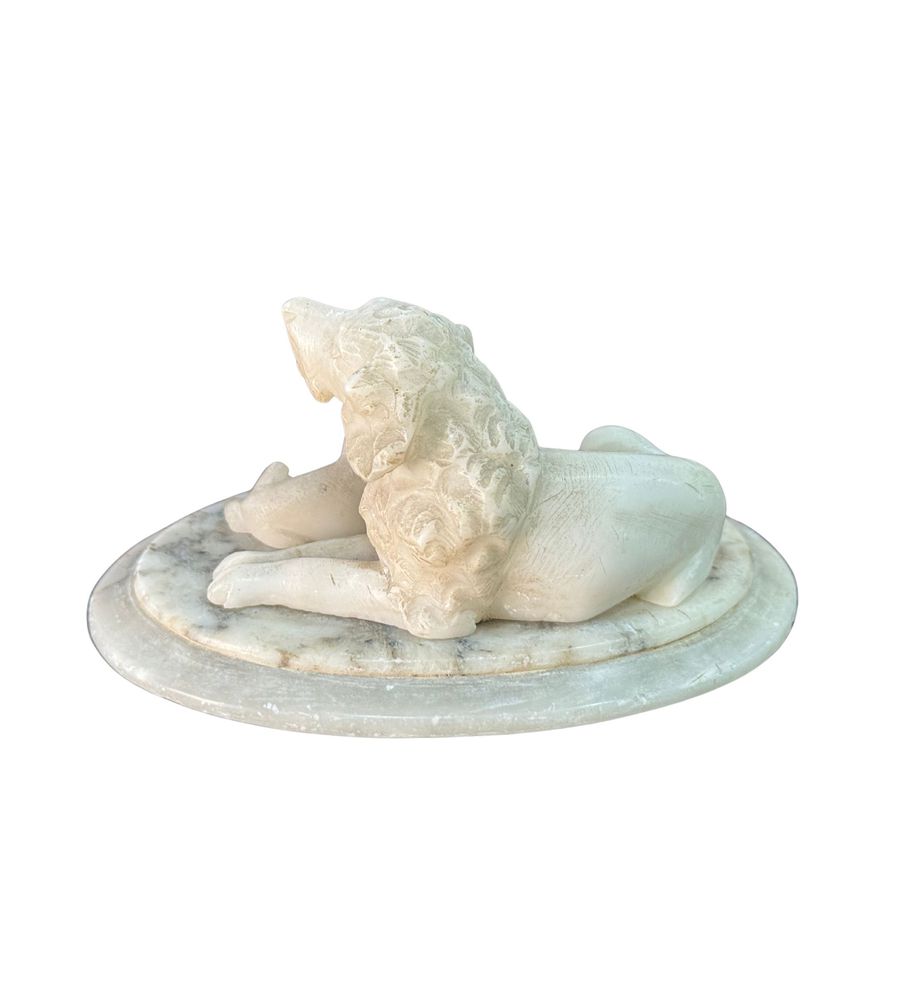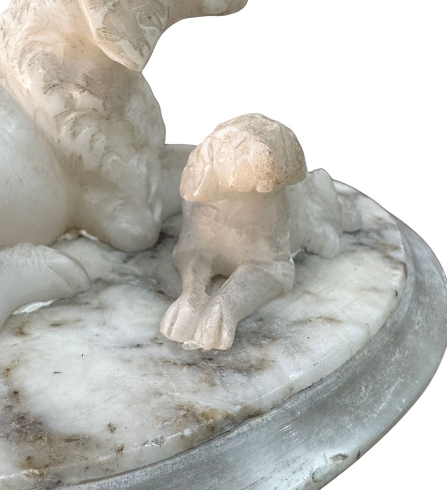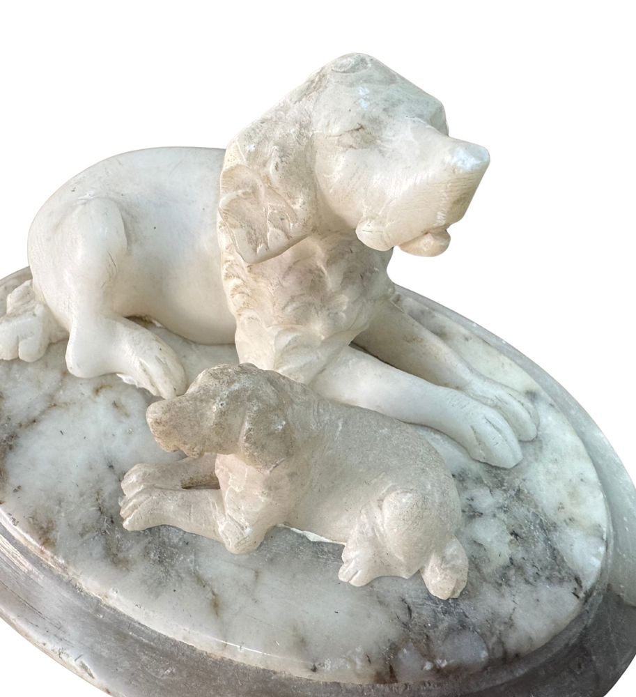 Scultura in marmo bianco, periodo XX secolo, raffigurante Cane con cucciolo....