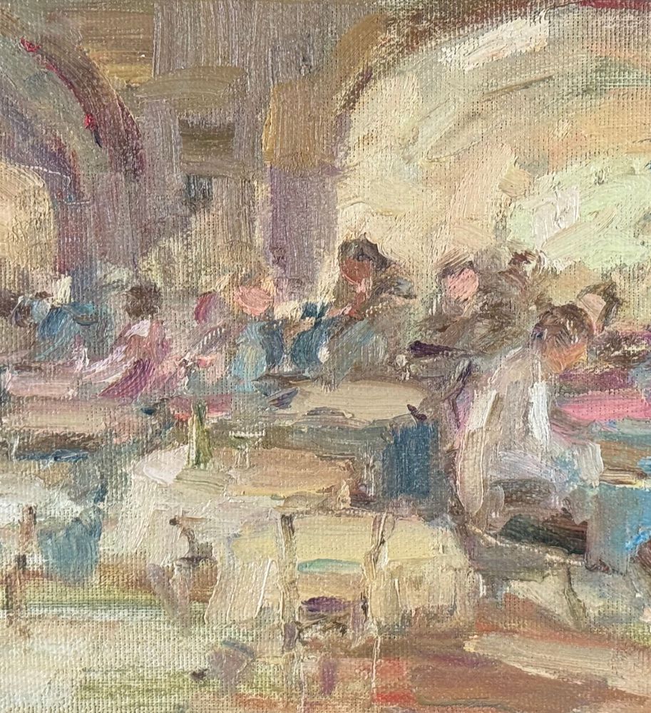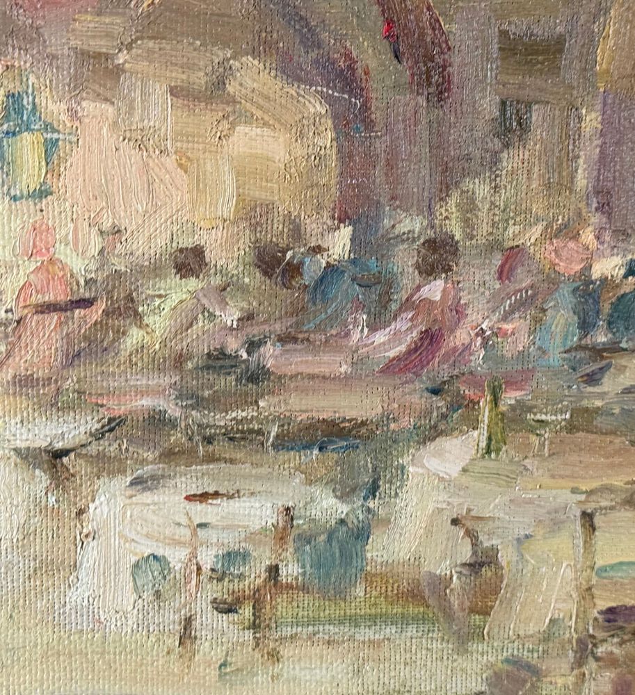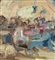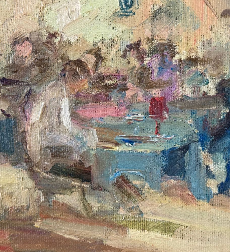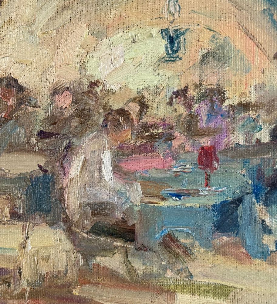 Dipinto olio su tela applicata su pannello, periodo XX secolo, scuola Italiana, raffigurante Personaggi in osteria. Dimensioni compreso cornice: 42x29. Dimensioni interno cornice: 35x22 cm. Firmato in basso a destra M. D'Aniello. Opera in buone condizioni.