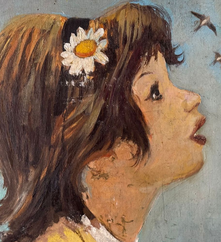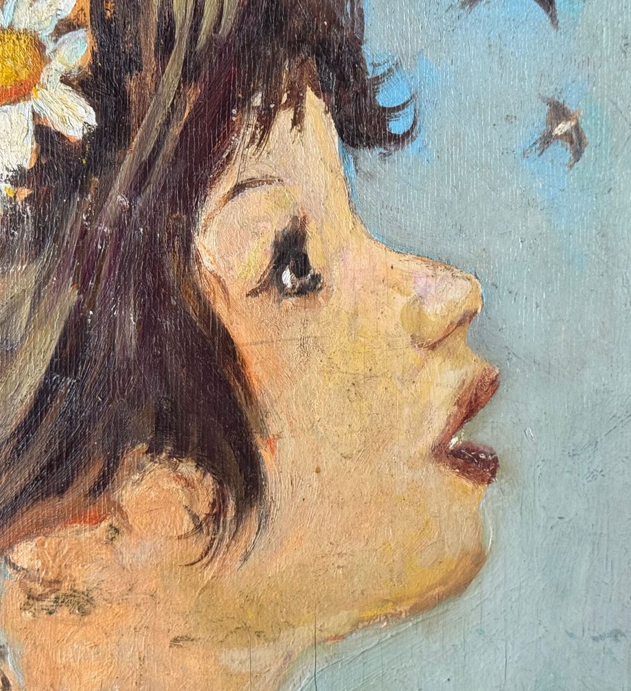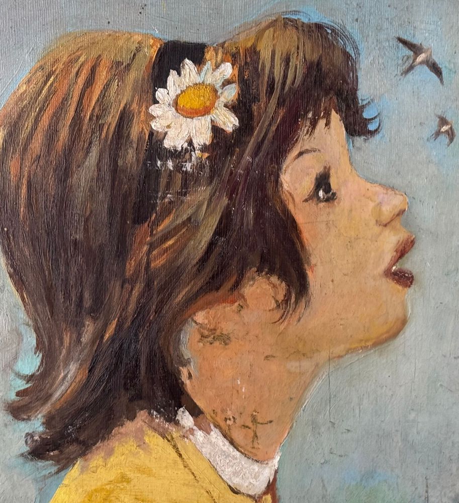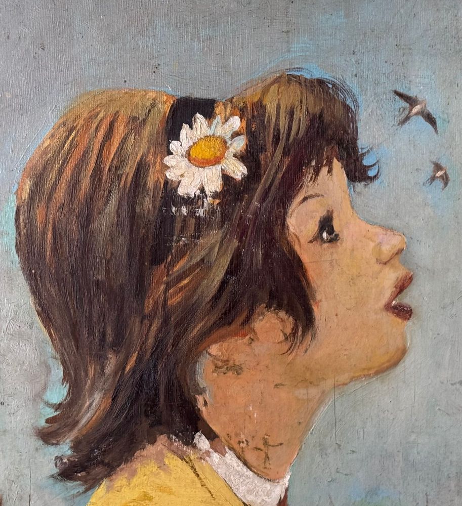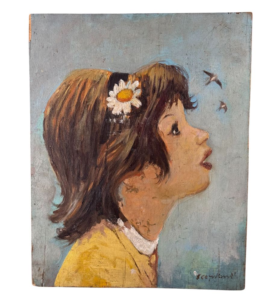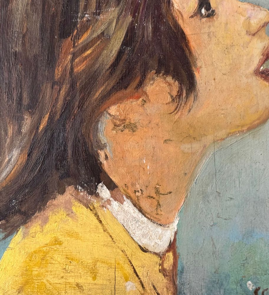 Dipinto olio su tavola, periodo XX secolo, scuola Italiana, raffigurante Profilo di bambina. Dimensioni: 38x48 cm. Firmato in basso a destra artista non identificato. Opera in buone condizioni.con lievi segni di vissuto come da foto allegate.