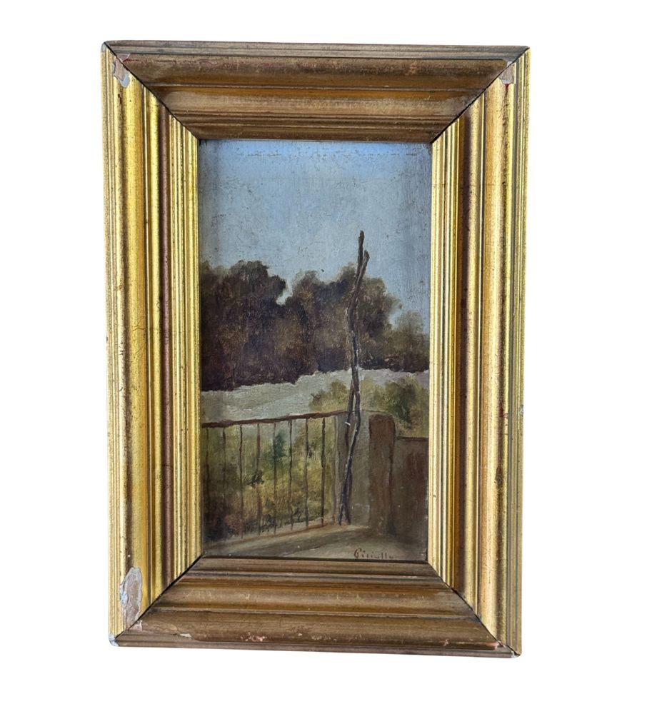 Dipinto olio su tavola, periodo XX secolo, scuola Italiana, raffigurante Silenzi nel verde. Dimensioni compreso cornice: 17x24 cm. Dimensioni interno cornice: 10x18 cm. Firmato in basso a destra Pietro Piciullo. Opera in buone condizioni.