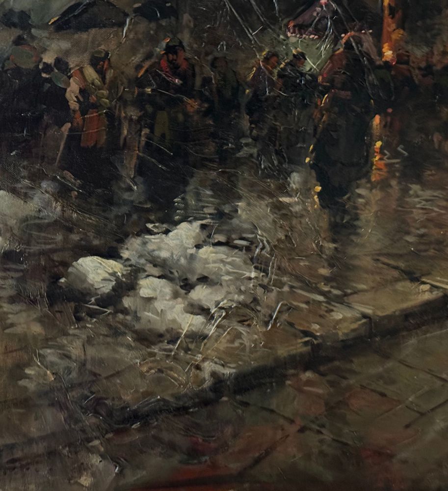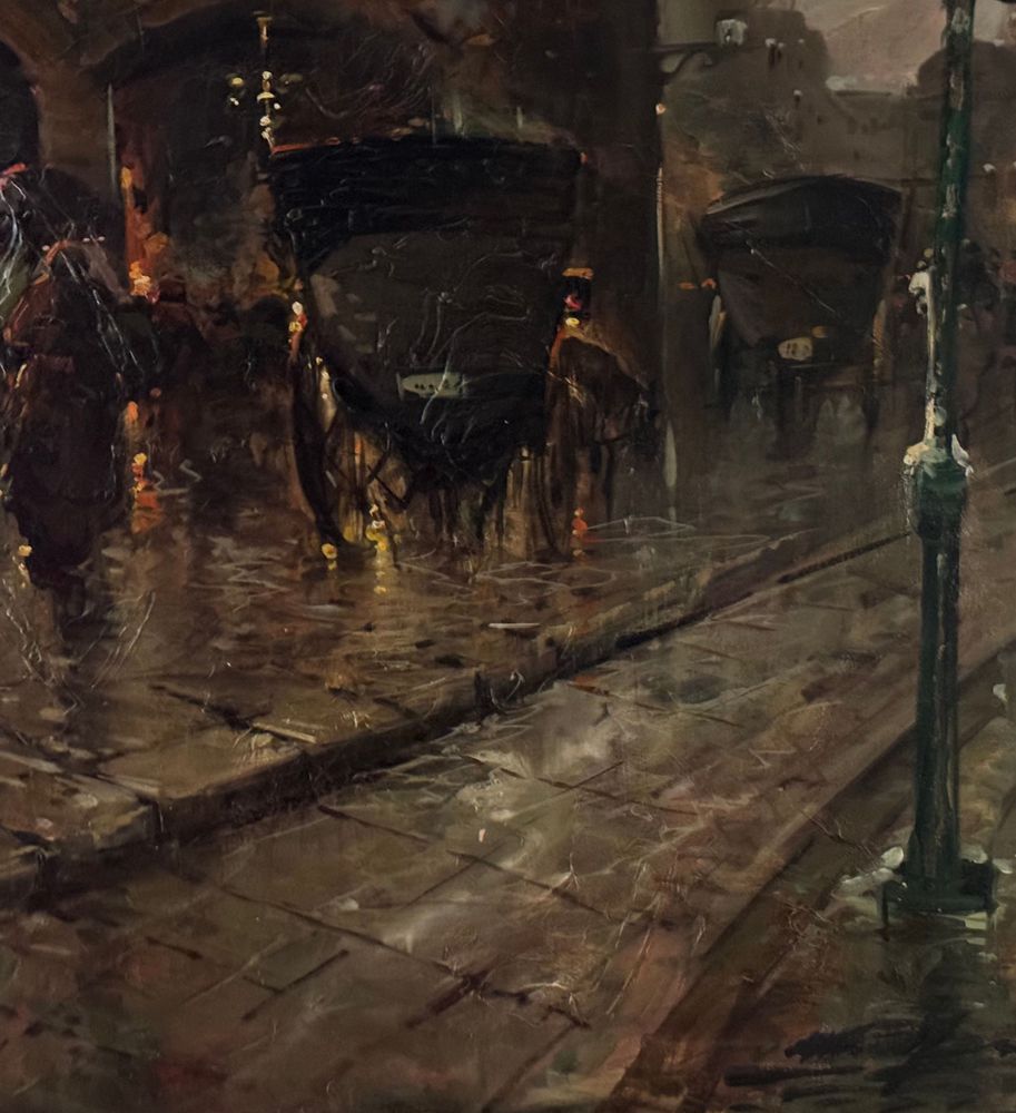 Dipinto olio su tela, periodo XX secolo, raffigurante Strada con personaggi e carrozze. Dimensioni: 80x60 cm. Da artista anonimo. Opera in buone condizioni con lievi segni di vissuto come da foto allegate.