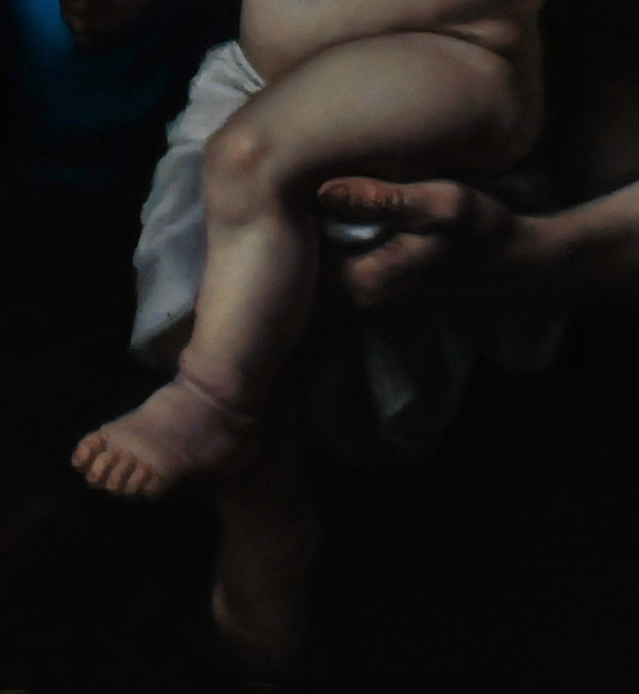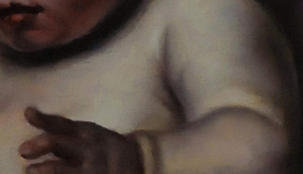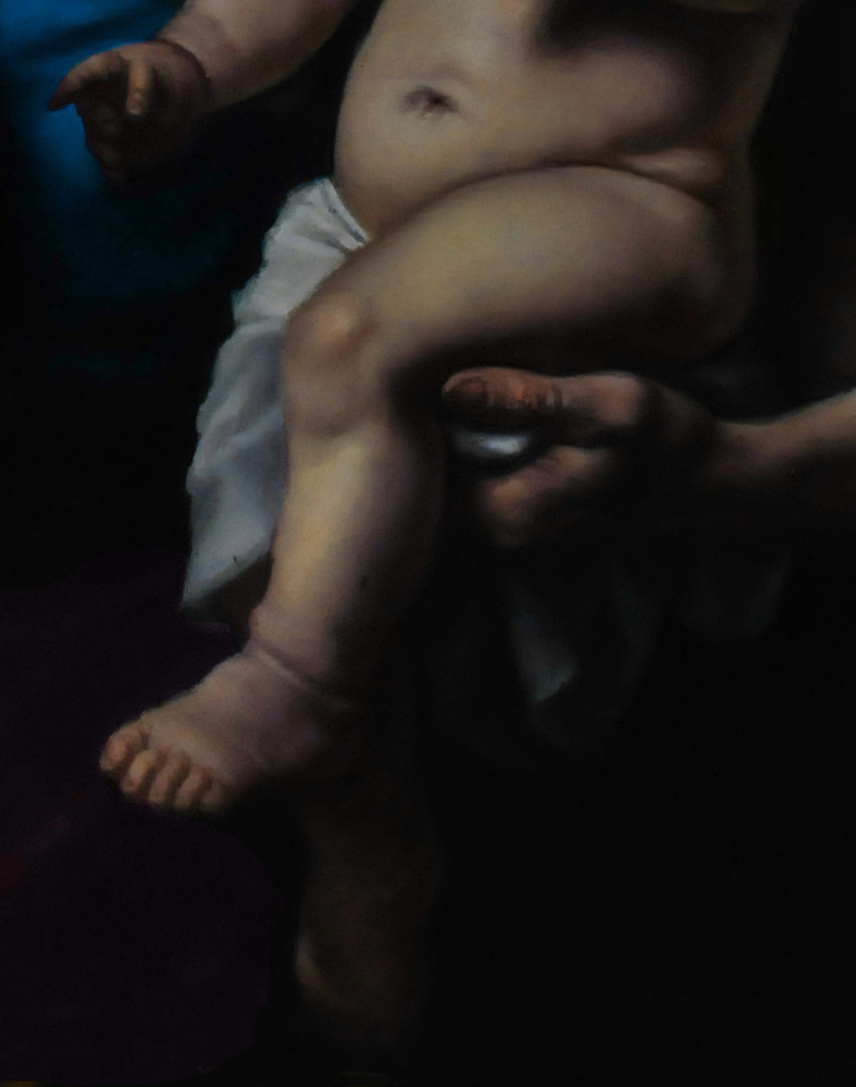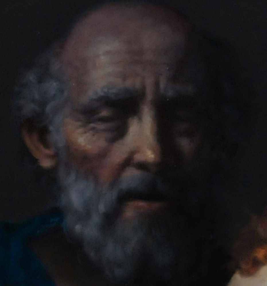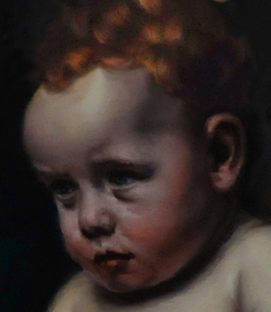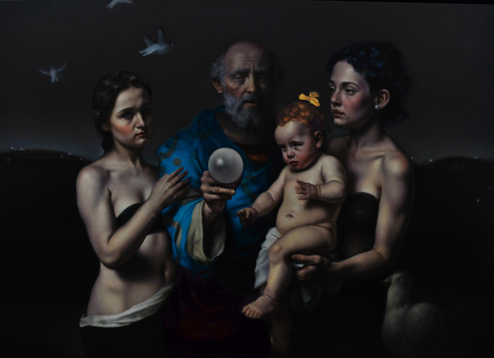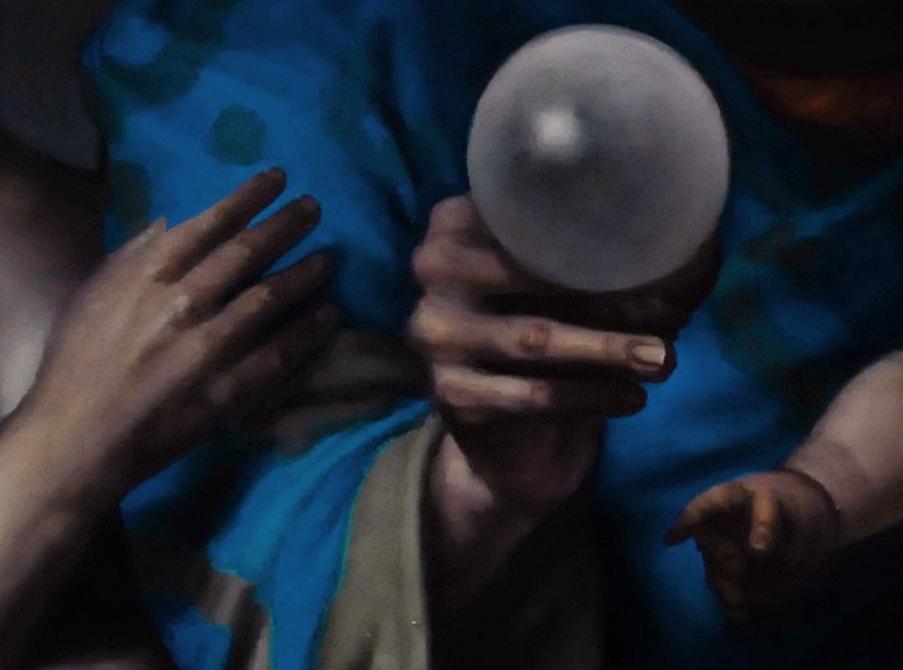 La particolare postura della bimba in relazione alla perla costituisce l’elemento compositivo di maggior personalità del dipinto. Il vecchio saggio scorge il futuro della bambina, mentre le due donne mostrano un’espressione di fiducia certa in tale destino.