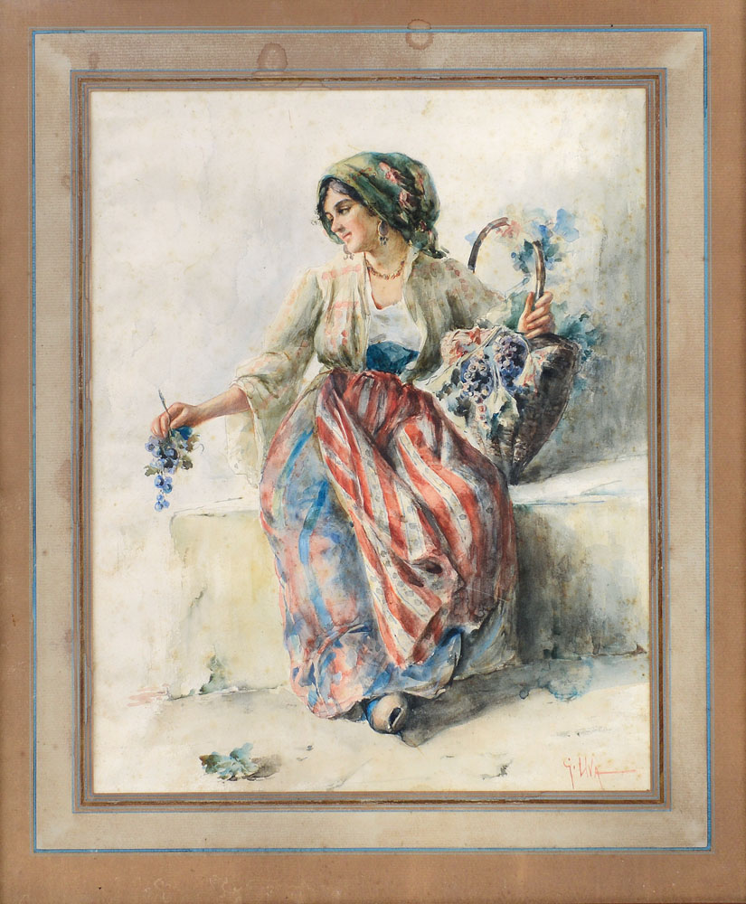 PITTORE DEL XIX SECOLO Popolanaacquerello su carta cm. 45x35, reca la firma...