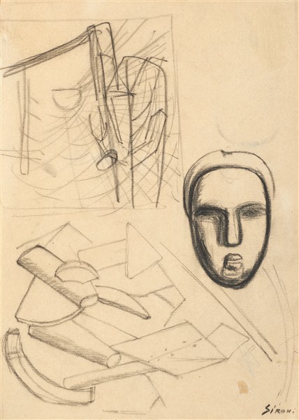 Mario Sironi "Studi e testa" 1919 circa matita grassa e matita su carta (applica