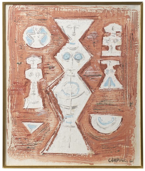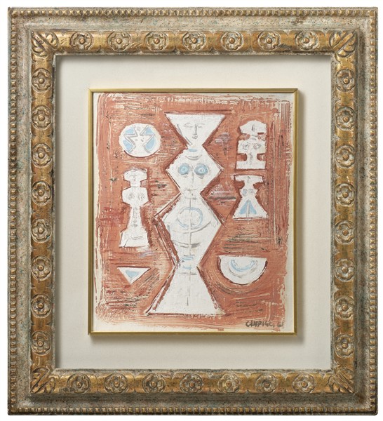 Lot 233 | Massimo Campigli "Idoli" 1961 tecnica mista su monotipo su carta applicata su te