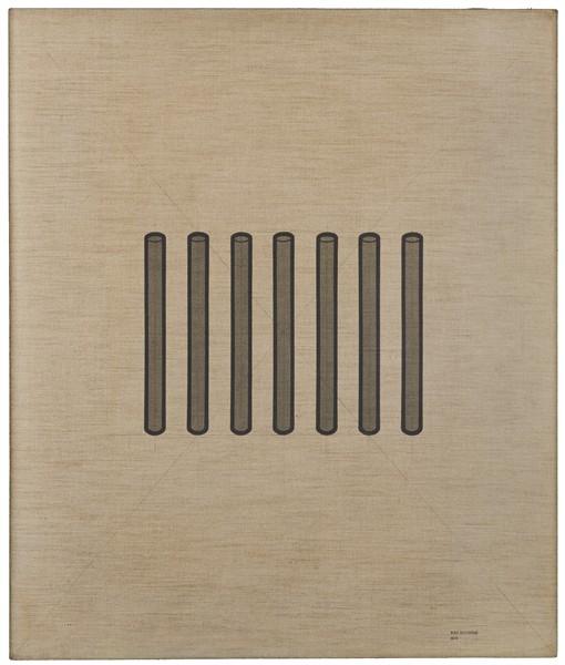 Tino Stefanoni "Le aste 18D" 1975 tecnica mista su tela cm 95x80 Firmato in bass