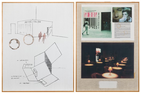 FRANCO VACCARI "Bar code / code bar" 1993 tecnica mista e collage su tela dittic