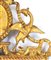 Il telaio, scandito da un motivo a treccia, è impreziosito da elementi fitomorfi e volute angolari, che si raccordano elegantemente ai piedini sagomati. La doratura originale, calda e luminosa, conserva una gradevole patina del tempo che ne esalta la qualità artigianale e la ricercatezza della lavorazione.