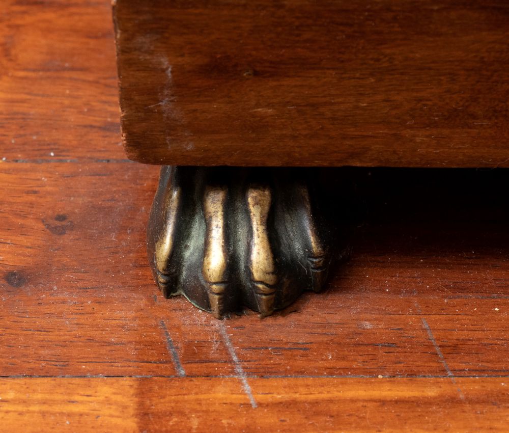 struttura semplice ed elegante, con cornice superiore leggermente sporgente e linee pulite. La base è decorata con piedini a zampa in metallo. Piano superiore in marmo.