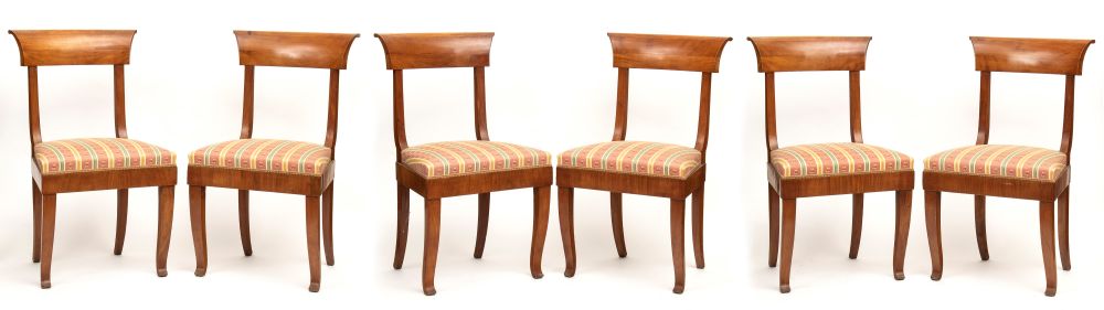 Gruppo di sei sedie lucchesi Toscana, XIX secolo Altezza x larghezza x profondità: 87 x 50 x 45 cm. Altezza seduta: 47 cm.