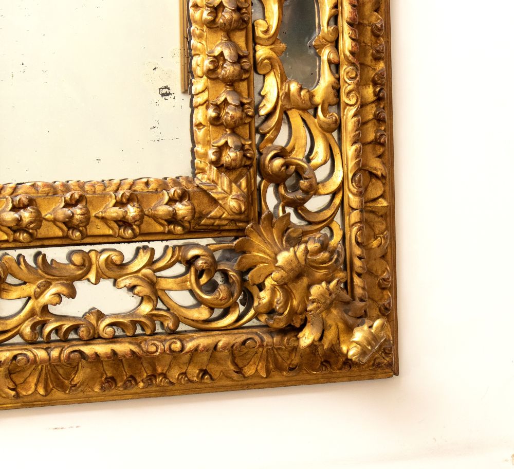 Specchiera italiana in legno intagliato XIX secolo Altezza x larghezza x profondità: 140 x 120 x 14 cm.