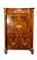 in piuma di mogano, con colonne piene, eleganti maniglie e dettagli in bronzo dorato. Intarsiato a motivi floreali in legni di frutto.