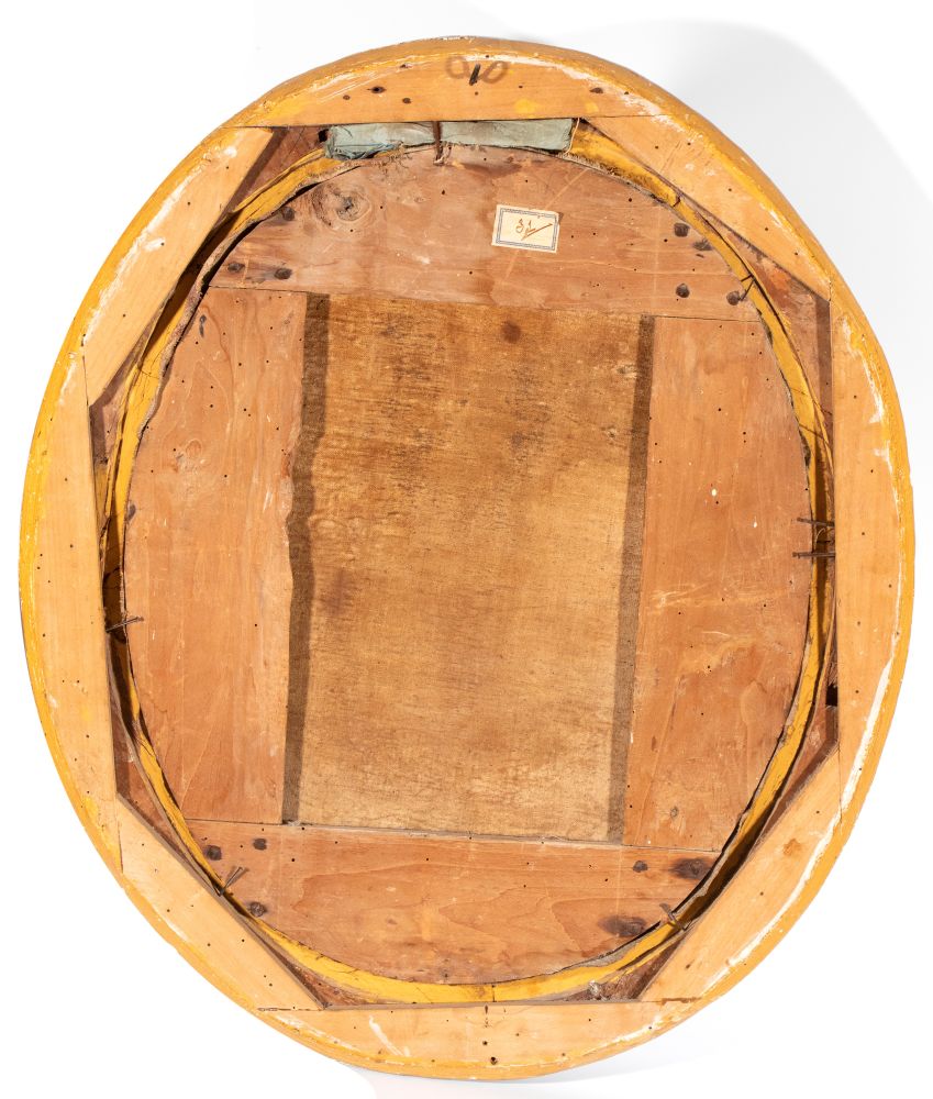 olio su tela, personaggio femminile di tre quarti, cornice intagliata e dorata coeva e lavorata.