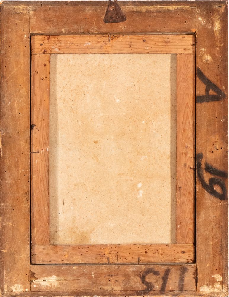 Altezza x larghezza con tela: 40 x 29 cm., con cornice: 53 x 29 cm.