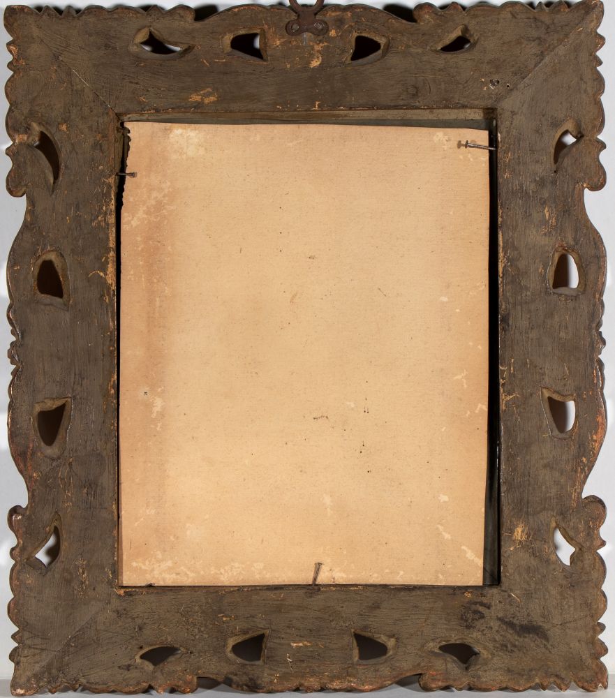 Coppia di incisioni italiane con cornice in legno intagliato e dorato Area lombarda, XVIII secolo Altezza x larghezza x profondità: 44 x 38 x 5 cm.