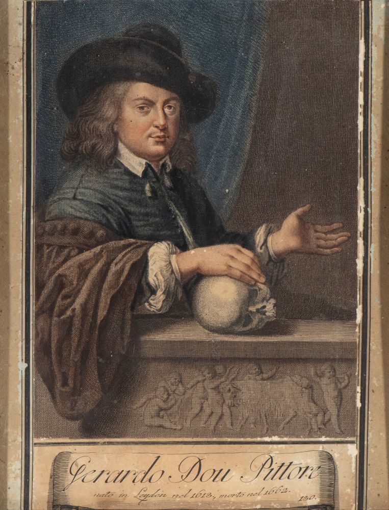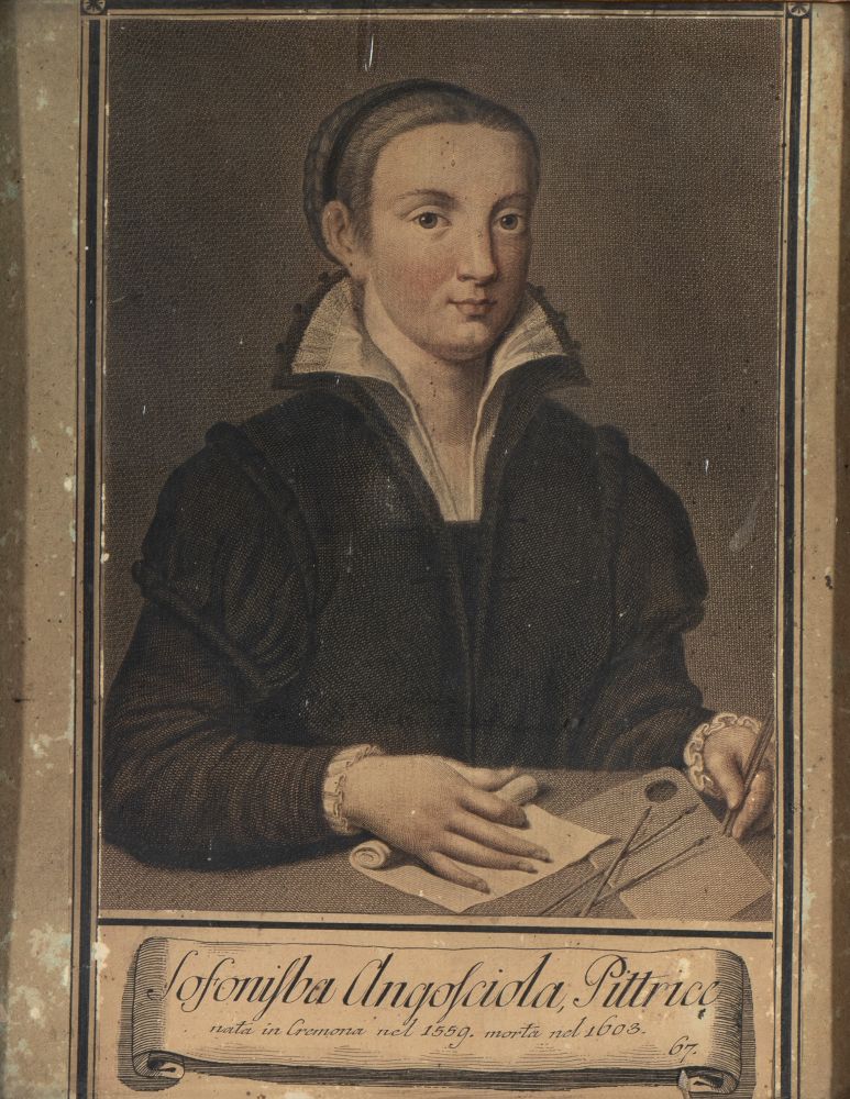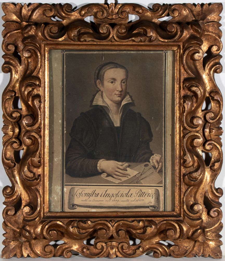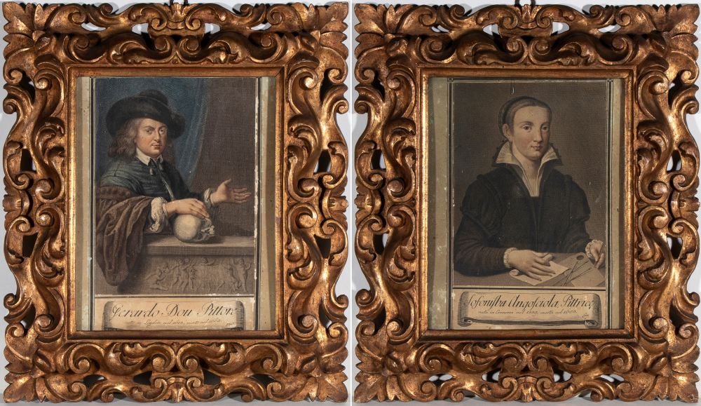 raffiguranti Gerard Dou ,pittore olandese del secolo d'oro, noto per i suoi dipinti di genere, ritratti e nature morte e Sofonisba Anguissola, pittrice italiana del Rinascimento, famosa per i suoi ritratti e autoritratti.