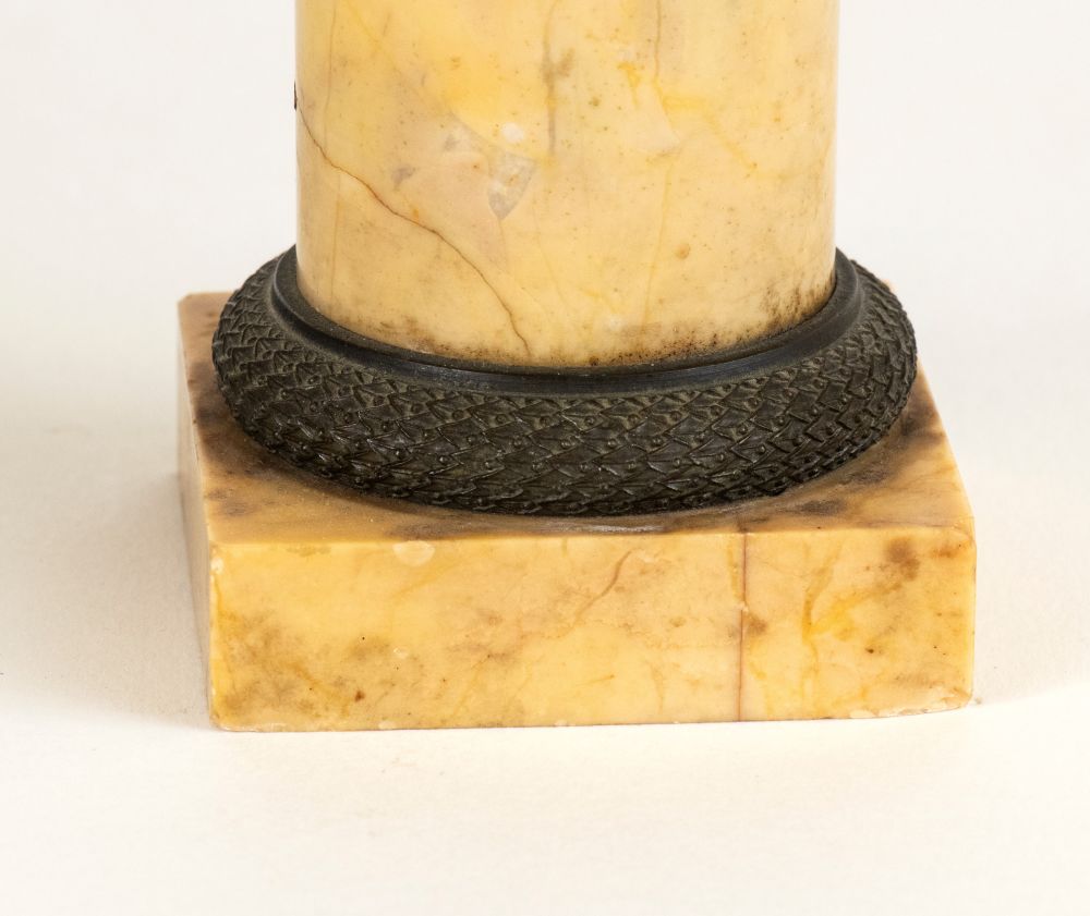 raffiguranti Benjamin Franklin e George Washington, poggianti su colonne in marmo giallo di Siena con base quadrata e fregio in bronzo dorato e cesellato a motivi fogliacei.