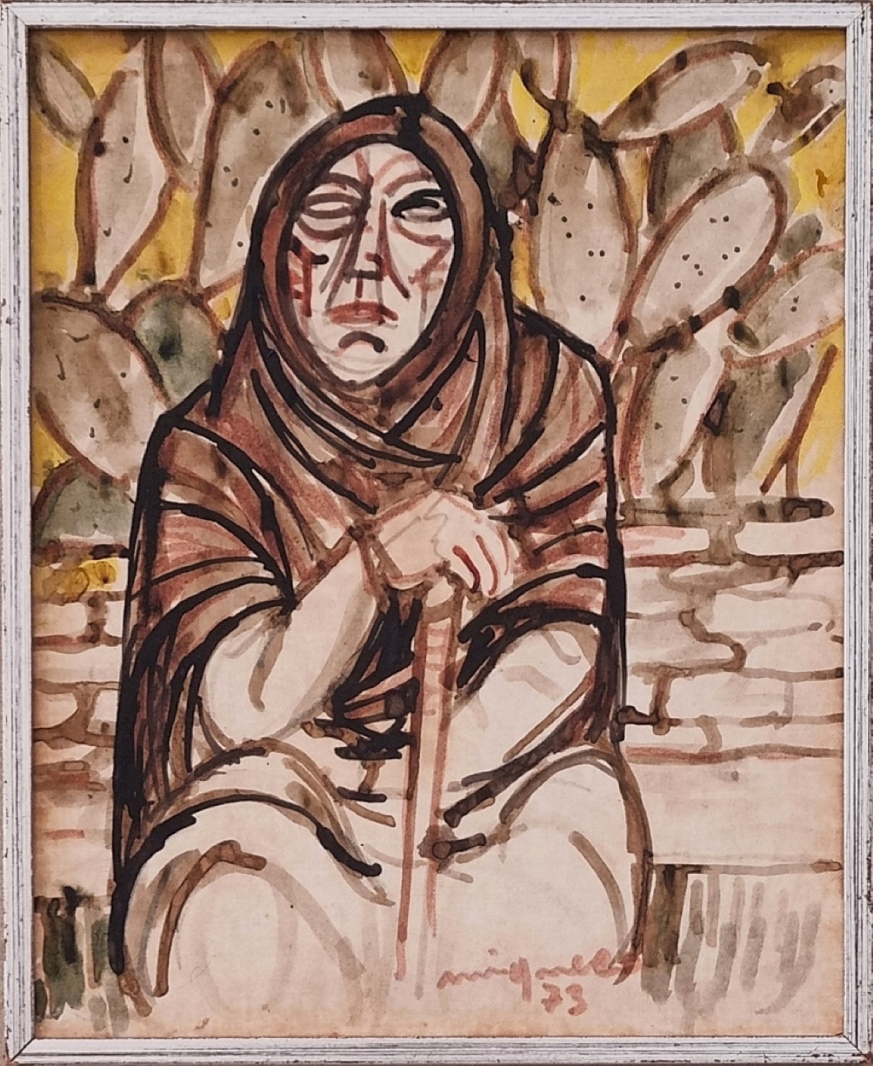 MIGNECO GIUSEPPE Messina 1903 - Milano 1997 "Figura" Tempera su tela cm 22,5x28 del 1973. Firmata e datata sul fronte in basso a destra. Al verso etichetta e timbri di provenienza Galleria d'arte La Lanterna. Provenienza altra casa d'aste.