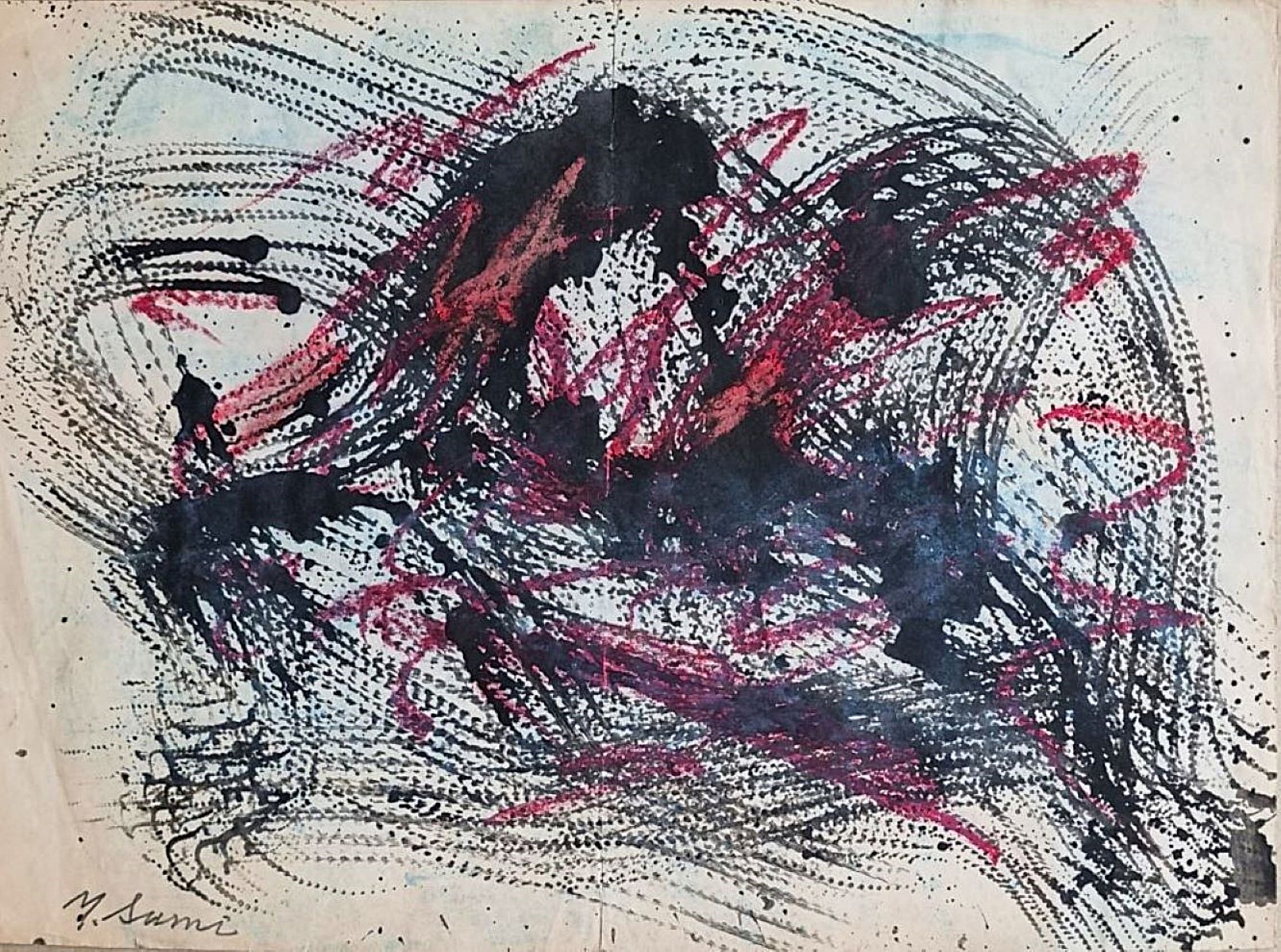 SUMI YASUO Giappone 1925 - 2015 "Senza titolo" Inchiostro e pastelli su carta cm 32,5x23,6 del 1954. Firmato sul fronte in basso a sinistra e sul retro. Certificato di autenticità su foto a cura dell'archivio generale dell'Artista.