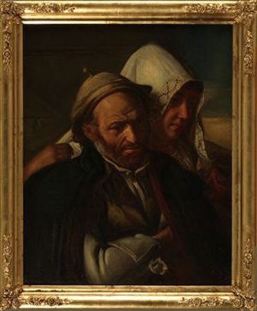 PITTORE ANONIMO XIX SECOLO Sul tardi della sera Olio su tela 81x65 cm Oil on...