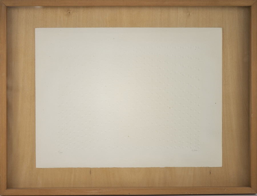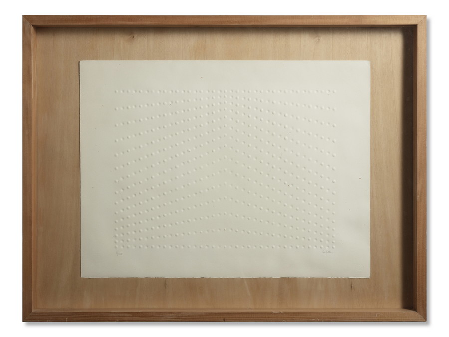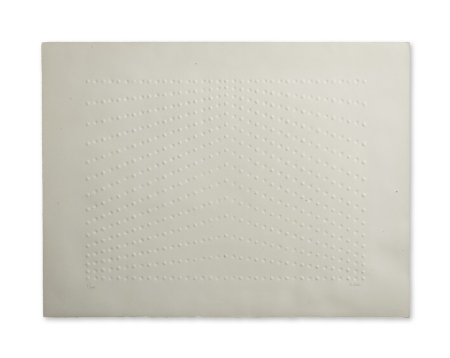 CASTELLANI ENRICO (1930 - 2017) SUPERFICIE BIANCA (DALLA CARTELLA GRAFICA '69). 1969. impressione su carta. Cm 59,50 x 44,50. firma e tiratura a matita, es. 1/100, timbro a secco Il Torcoliere.