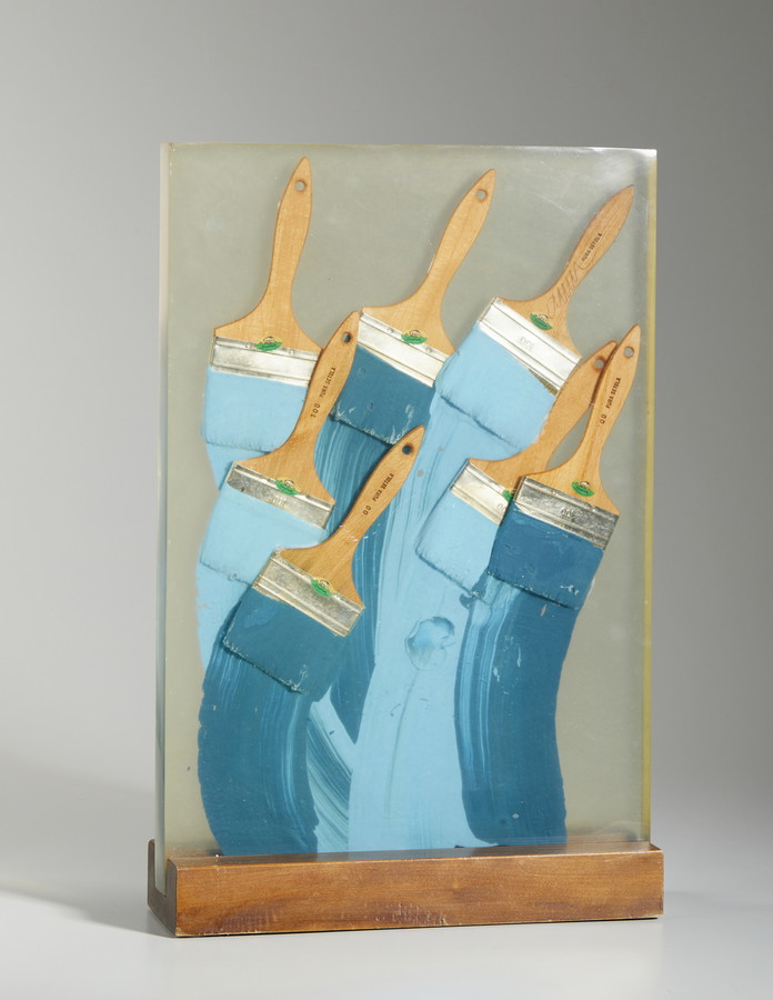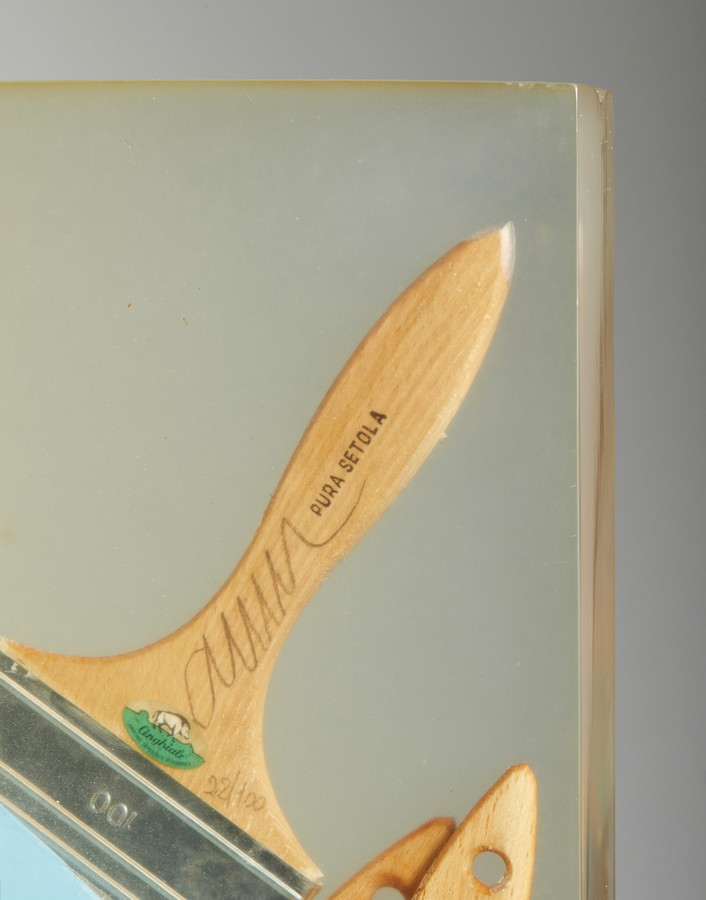 ARMAN FERNANDEZ (1928 - 2005) BRUSH-STROKES . 1992. Inclusione di pennelli e vernice in resina. Cm 44,50 x 68,50 x 14,50. firma e tiratura a matita, es. 22/100