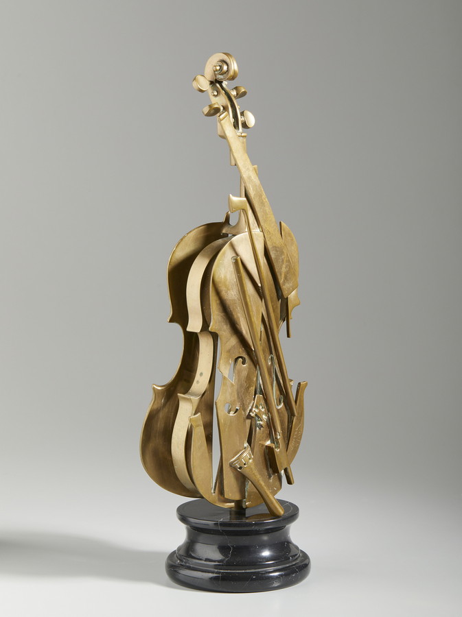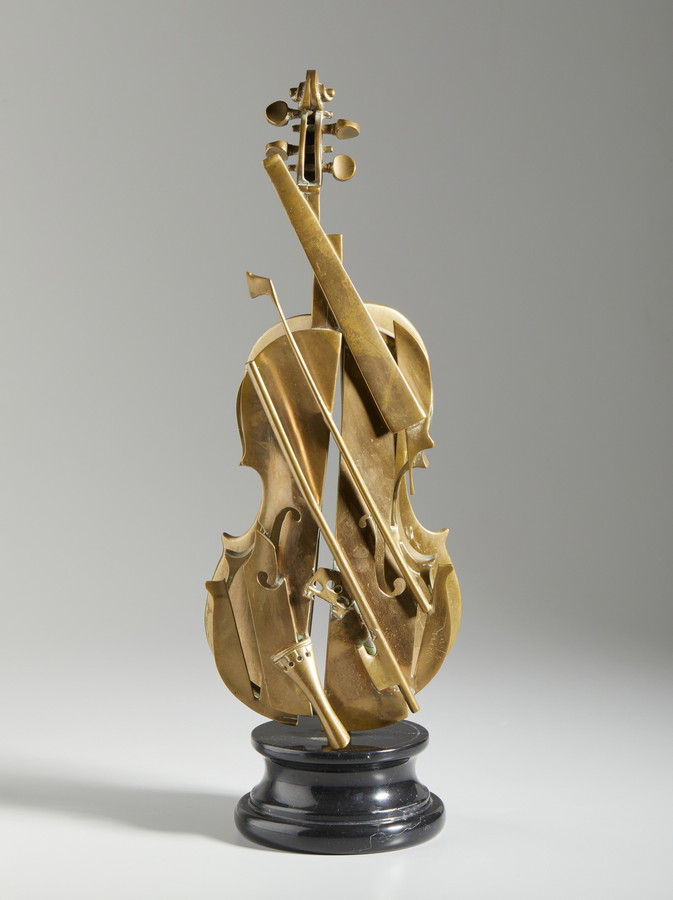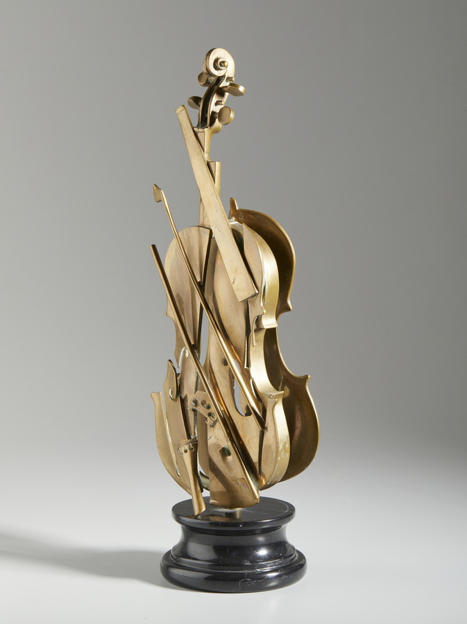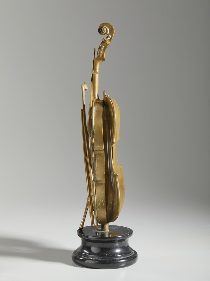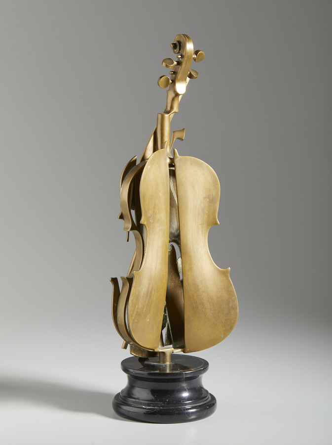 ARMAN FERNANDEZ (1928 - 2005) LE VIOLON DE CREMONE. 1997. Bronzo, base in marmo. Cm 20,00 x 62,50 x 18,00. firma e tiratura incisa, es.54/100