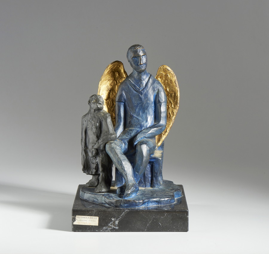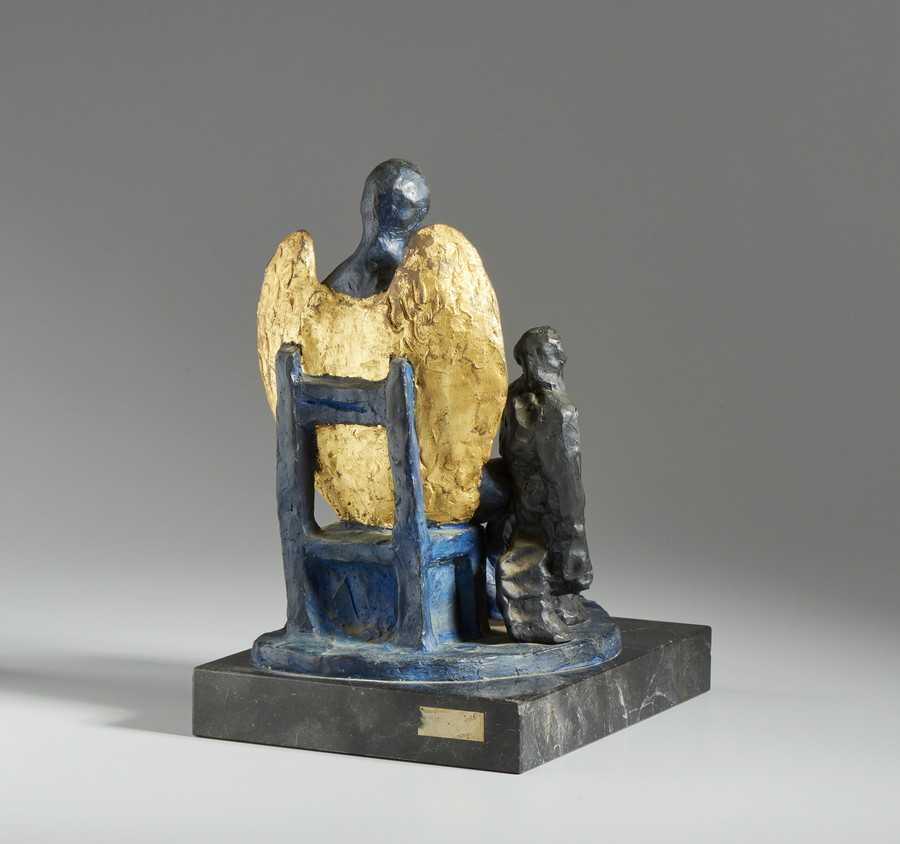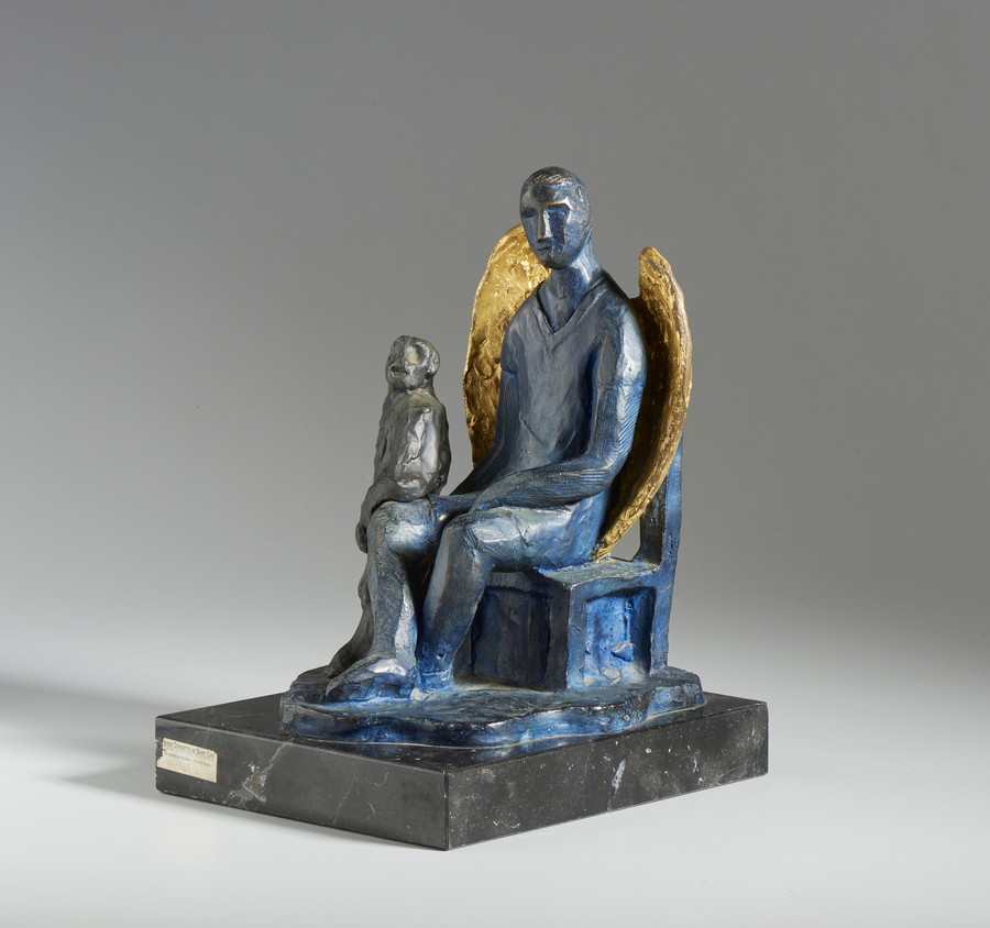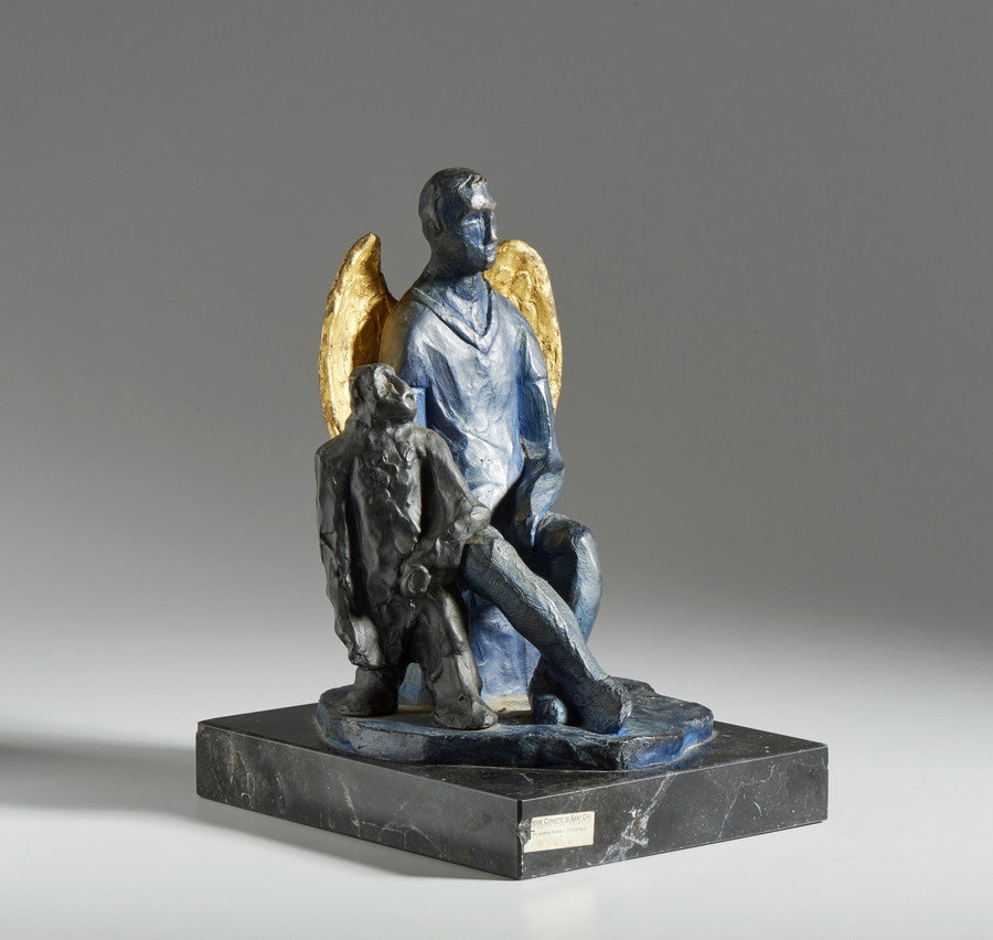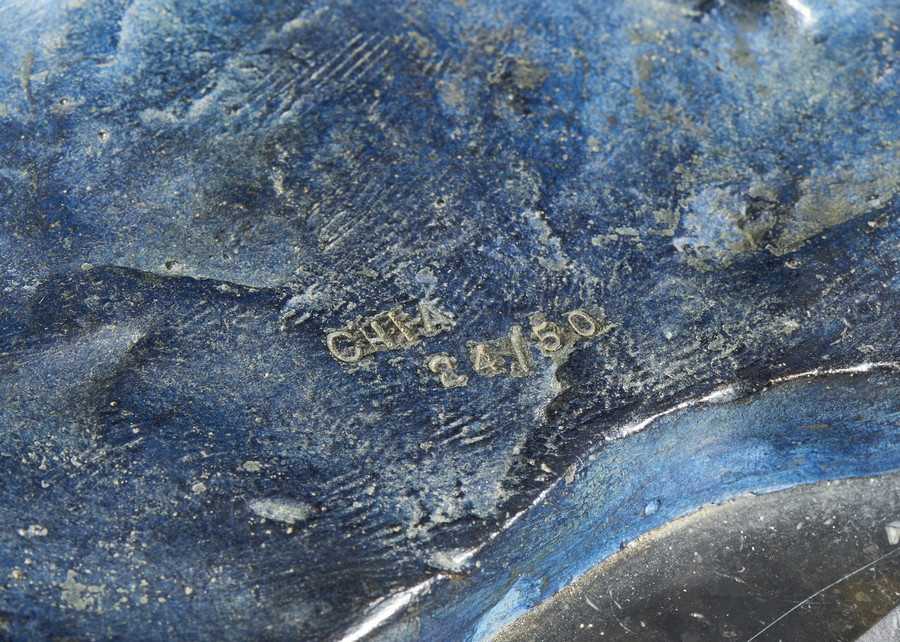 CHIA SANDRO (n. 1946) ANGELO BLU. bronzo dipinto, su piedistallo in marmo. Cm 32,00 x 40,50 x 26,00. firma e tiratura, es. 24/50