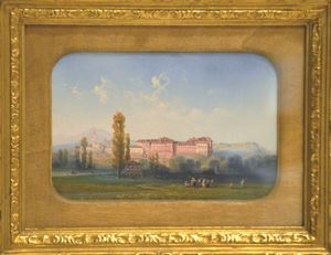 BOSSOLI CARLO Lugano 1815-1884 Torino Castello di Agliè 1854 Olio su carta...