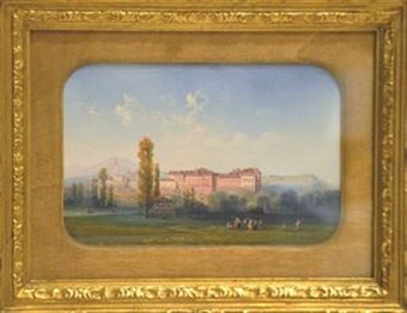 BOSSOLI CARLO Lugano 1815-1884 Torino Castello di Agliè 1854 Olio su carta 28x21 cm Firma e data in basso a sinistra Già Galleria Bottisio, Torino, etichetta al retro Oil on paper Signed and dated lower left