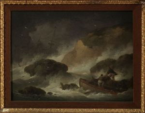 MORLAND GEORGE Londra 1763-1804 Marina con scena di naufragio 1795/1800 Olio...