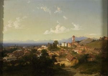CAMINO GIUSEPPE 1818-1890 Veduta di Camino Olio su tela 50x70 cm Firma in...