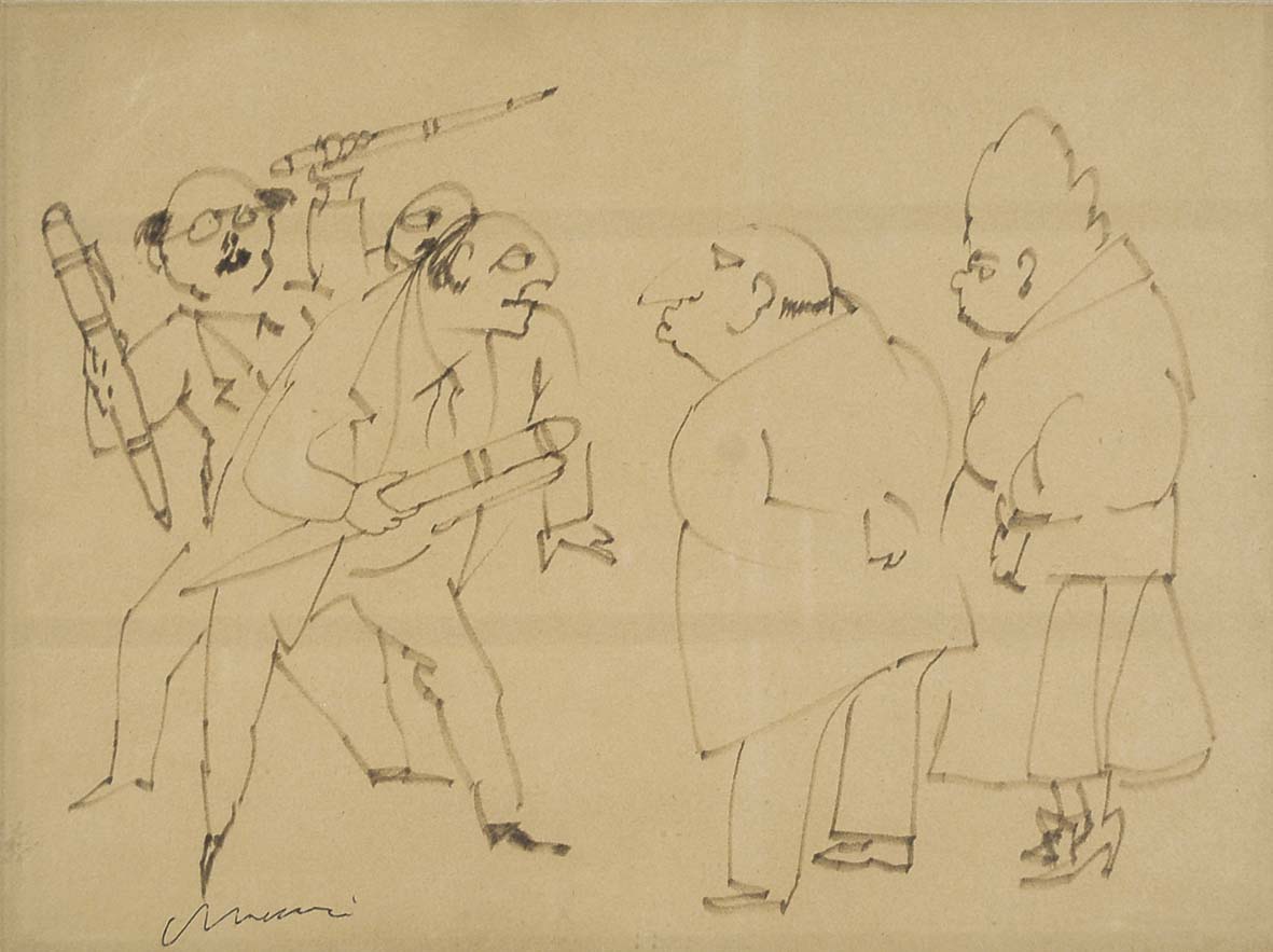 MACCARI MINO Siena 1898 - Roma 1989 Personaggi (1950) disegno a china su carta 30x38 cm firma in basso a sinistra autentica dell'Autore su foto