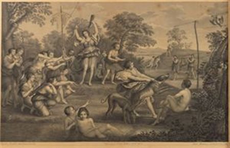 MATTEUCCI SANTO Diana a caccia China su carta 44,5x74,5 cm Da un dipinto di Domenico Sampieri, detto il Domenichino