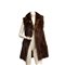 Gilet lungo in pelliccia di visone brown, lavorazione delle pelli a lisca di pesce, grosso bottone al collo, colletto in pelliccia di visone lavorato a pelli intere, all'interno monogramma F.R. Taglia S. Etichetta di produzione.