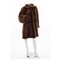 Cappotto in pelliccia di visone brown con pelli lavorate verticalmente in tre ordini, collo chiuso con bottone gioiello, maniche lunghe ed ampie, due tasche. Usura al collo. Taglia sartoriale XL. Fodera interna.