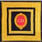 Foulard in seta a campo nero con decori a cornice in oro, centrale ovale nei toni del rosso con monogramma Dior. Segni di uso ed un filo tirato. Marchio di produzione.