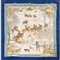 Foulard in seta “L’Hiver”, disegno di Philippe Ledoux, fondo avorio con scene invernali di vita in campagna, bordo blu elettrico. Macchie e scoloriture. Marchio di produzione.