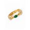 Bracciale rigido “Leoni” con chiusura a scatto, montatura in metallo dorato, pavé di diamanti sintetici e smeraldi sintetici di taglio differente, due teste di leone contrarie. Marchio di produzione.