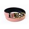 Cintura double face in pelle rosa e nera, fibbia con logo in metallo dorato e marchio incusso. Cintura mai usata. Scatola e dust. Marchio di produzione.