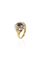in oro giallo ed argento, XX secolo, sommità con zaffiro taglio ovale di ct 1,0 ca e rosette a decoro per totali ct 0,40 ca