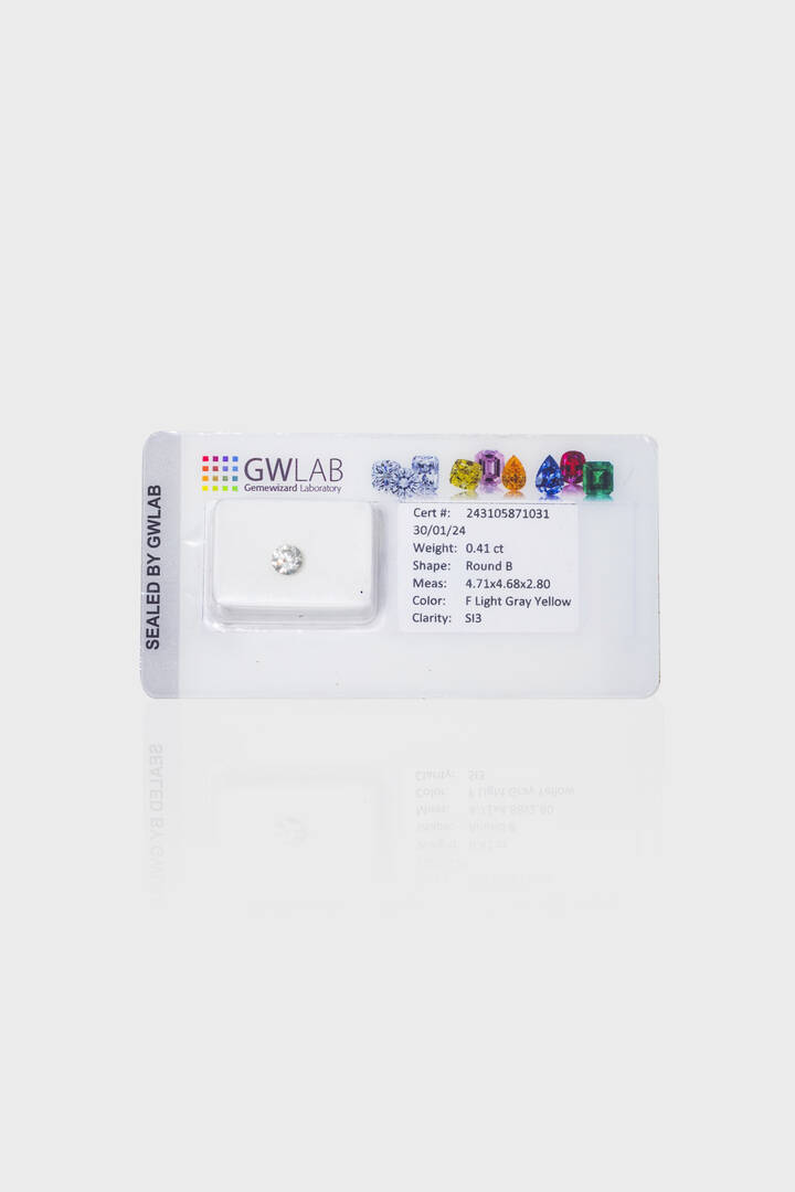 di ct 0,41, colore Fancy light grey yellow, purezza S3, Certificato GW Lab n. 243105871031 ril il 30/01/2024
